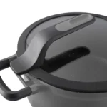 Pan-frying chicken, braising meat or sautéing vegetables, whatever your dish needs, you’ll easily get it done with this covered sauté pan. It’s suitable for any kind of stovetop and comes with a stay-cool detachable handle that you can snap off to save valuable storage space in your kitchen drawer. The lightweight aluminium body features a multilayered non-stick coating that ensures an easy food release and special pouring rims for dripless pouring. To top this off, there’s the clear glass lid that can be placed vertically on the body of the pan to keep your hands free for stirring and serving and has two different sized pouring areas for easy straining of various ingredients.