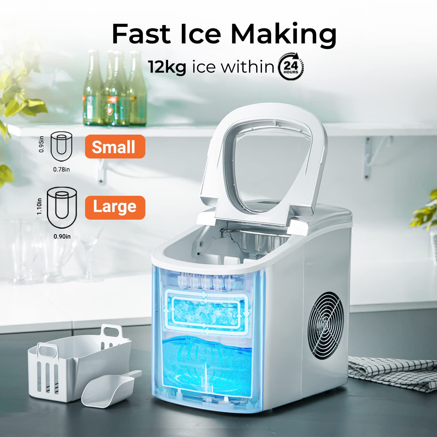 Production Capacity – This Ice Maker Provides 24 Hours Ice,Production. You Can Get A Total Of 12Kg Ice Within 24 Hours. That Is Equivalent To 1400 Cubes