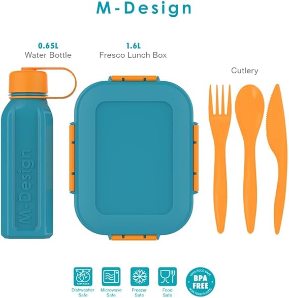 Our 3-piece lunch set is an essential for busy parents and students. It includes a BPA-free and food safe lunch box, a leakproof water bottle, and a 3-piece cutlery set inside the box. With this set, you can rest assured that your meal and drink will stay safe and fresh.