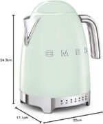Smeg KLF04PGUK 50’s Retro Style Kettle, 7 Temperature Settings, 1.7 L Capacity with Water Level Indicator, 360 Swivel Base, Stainless Steel,Pastel Green